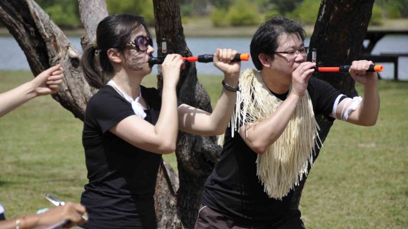 Participants are introduced to unusual traditional sports in a way that encourages participation, inclusion and mutual respect. Everyone has an opportunity to get involved and contribute to team and tribal success – there are roles for everybody. Designed to set the pulse racing, this healthy experience develops team dynamics while having fun! Strategy is key to success as the rules enable teams to play to their strengths, resting chosen players during some challenges in order to reserve strength for their preferred quests.